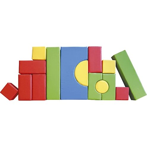 Inhalt: 15 Soft-Bausteine: Quader, Würfel, U-Elemente, Zylinder.
