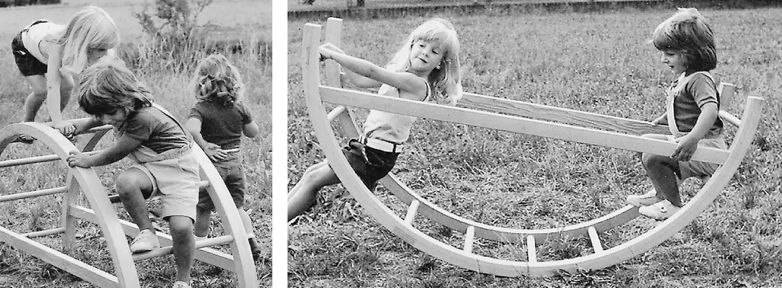 Anders war es, wenn unsere Tante mit ihrer grossen Tasche an den Familienfesten erschien. Da waren nicht etwa Geschenke drin, sondern ihr Kamera-Equipment. "Es ist genau das ideale Wetter, um Aufnahmen draussen zu machen." So stellten wir uns von klein an vor die Linse, um die Produkte für den Verkaufskatalog in Szene setzen zu können. Das hat mit Schwarz-Weiss-Fotografie angefangen und wurde bis heute massiv professionalisiert. In älteren Ausgaben der gedruckten Jahreskataloge entdecken wir nach all diesen Jahren auch heute noch ab und zu unsere früheren Ichs – und in den aktuellen Ausgaben erfreulicherweise bereits die 4. Generation unserer Familie. Übrigens gibt es Produkte wie etwa unsere Holz-Bogenschaukel oder den Riesenkreisel, welche bis heute im Sortiment zu finden sind.»