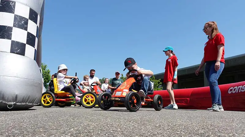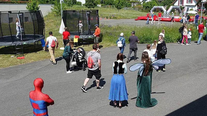 Auf dem Gelände von ProSpiel warteten viele Attraktionen auf die Kinder: die beliebte GoKart-Bahn, ein kleiner Trampolin-Park und das Päckli-Fischen im Fachgeschäft sorgten für grosse Begeisterung. Beim Basteln mit Klara Kleister entstanden viele kreative Werke. Ein besonderes Highlight war die speziell gestaltete KMSK-Tischbombe, die jedes Kind nach Herzenslust selbst befüllen durfte.