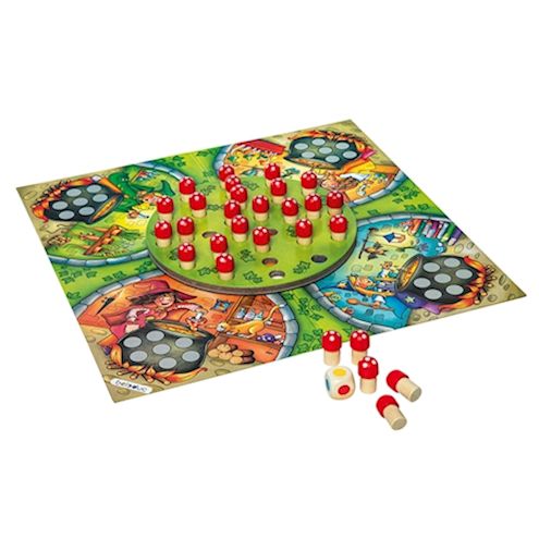 In den Hexentöpfen wird ein Pilzgericht gekocht. Die kleinen Köche erwürfeln sich die Pilzfarben. Unter welchem Pilz auf dem Drehteller liegt wohl die gesuchte Farbe? Wer hat sich zuerst die richtigen Pilze zusammengesammelt? Farberkennung, Konzentration und ein gutes Gedächtnis sind gefragt.